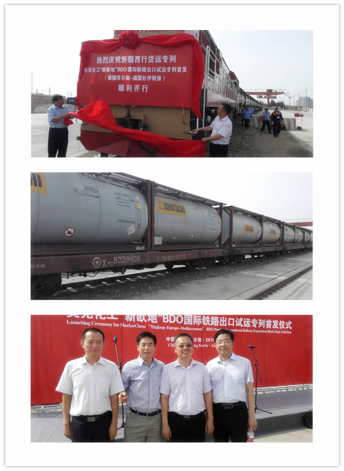 On July 29th, 2015, operated by Bondex, Xinjiang - Duisburg tank container block train service officially opened. Such kind of tank chemicals railway transportation to Europe is the first time in our country, compared to maritime transport, railway transport to Germany needs only about 20 days, it has greatly met the customers’ demands. Huatie-Lianda International Freight and Forwarding Co. Ltd is responsible to coordinate with the railway transport authorities of Kazakhstan, Belarus, Russia, Poland and Germany along the way, responsible to process certification for such chemical products and intermediate reloading service, currently we have already had a smooth operation procedure, which is also the comparative advantage of the company’s rail transport sector. The official opening of the block train service has put an icing on the cake to the development of company’s railway transport business.