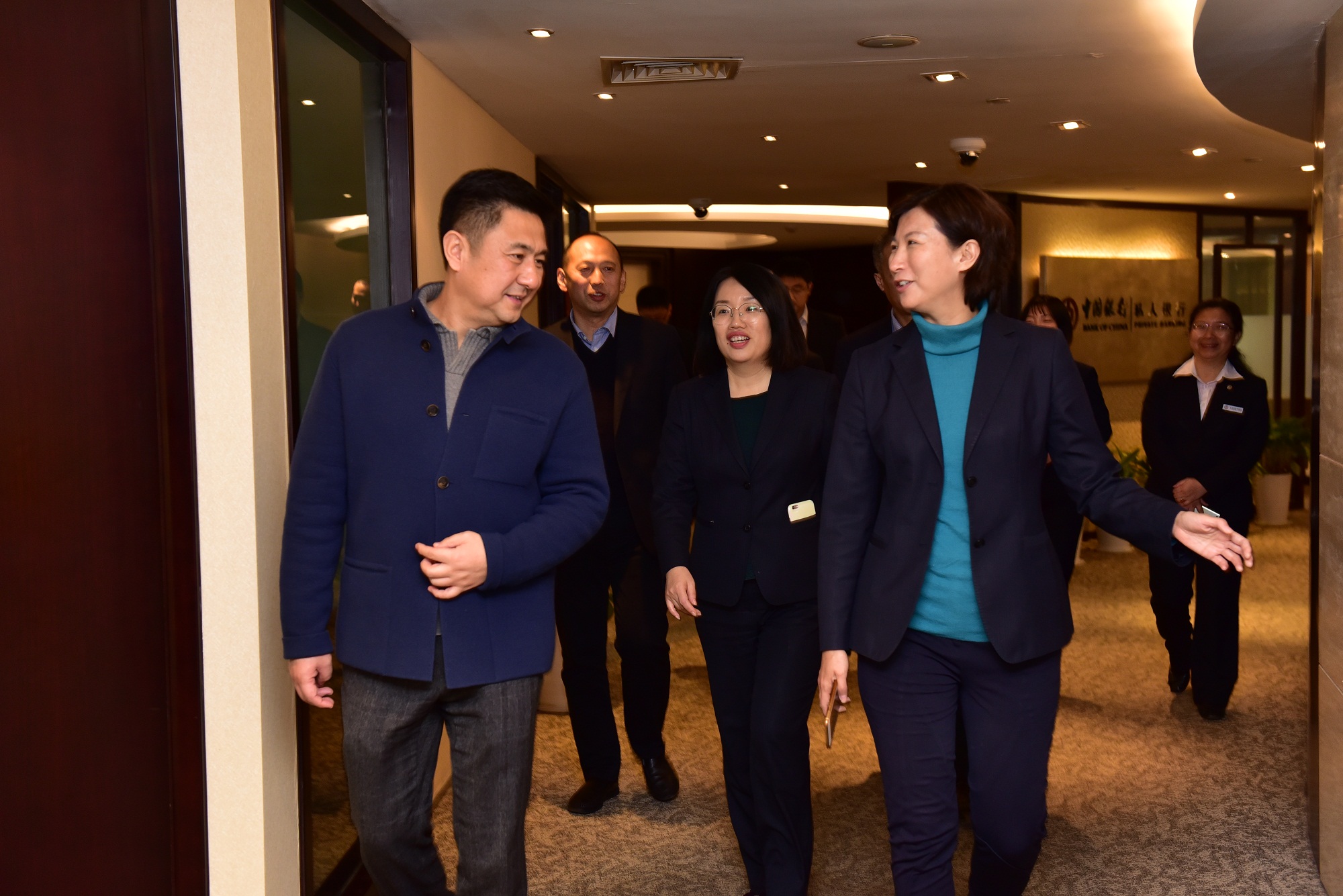 在馮玲芝總經(jīng)理的陪同下,唐總一行參觀了中國(guó)銀行分行49樓的私行中心,并聽(tīng)取了中國(guó)銀行分行及營(yíng)業(yè)部的歷史沿革和基本情況。隨后,雙方人員進(jìn)行了深入的座談交流。