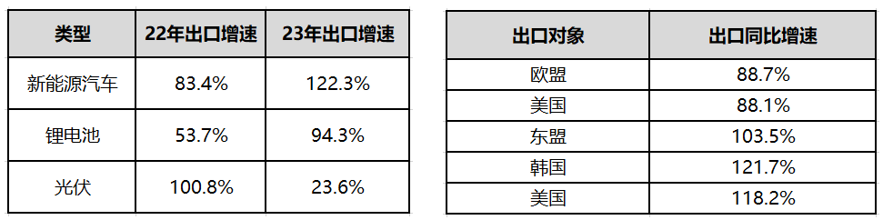 據(jù)海關(guān)統(tǒng)計,一季度我國貨物貿(mào)易進出口總值9.89萬億元人民幣,同比增長4.8%。其中,出口5.65萬億元,同比增長8.4%;進口4.24萬億元,同比增長0.2%,其中“新三樣”( 新能源汽車、鋰電池、光伏)表現(xiàn)搶眼合計出口2646.9億元,同比增長66.9%,占我國出口比重同比提升1.7個百分點,達到4.7%?!靶氯龢印敝饕隹趯ο鬄闅W盟、美國、東盟、韓國和英國,這五大市場出口規(guī)模占“新三樣”出口總額的71.6%;