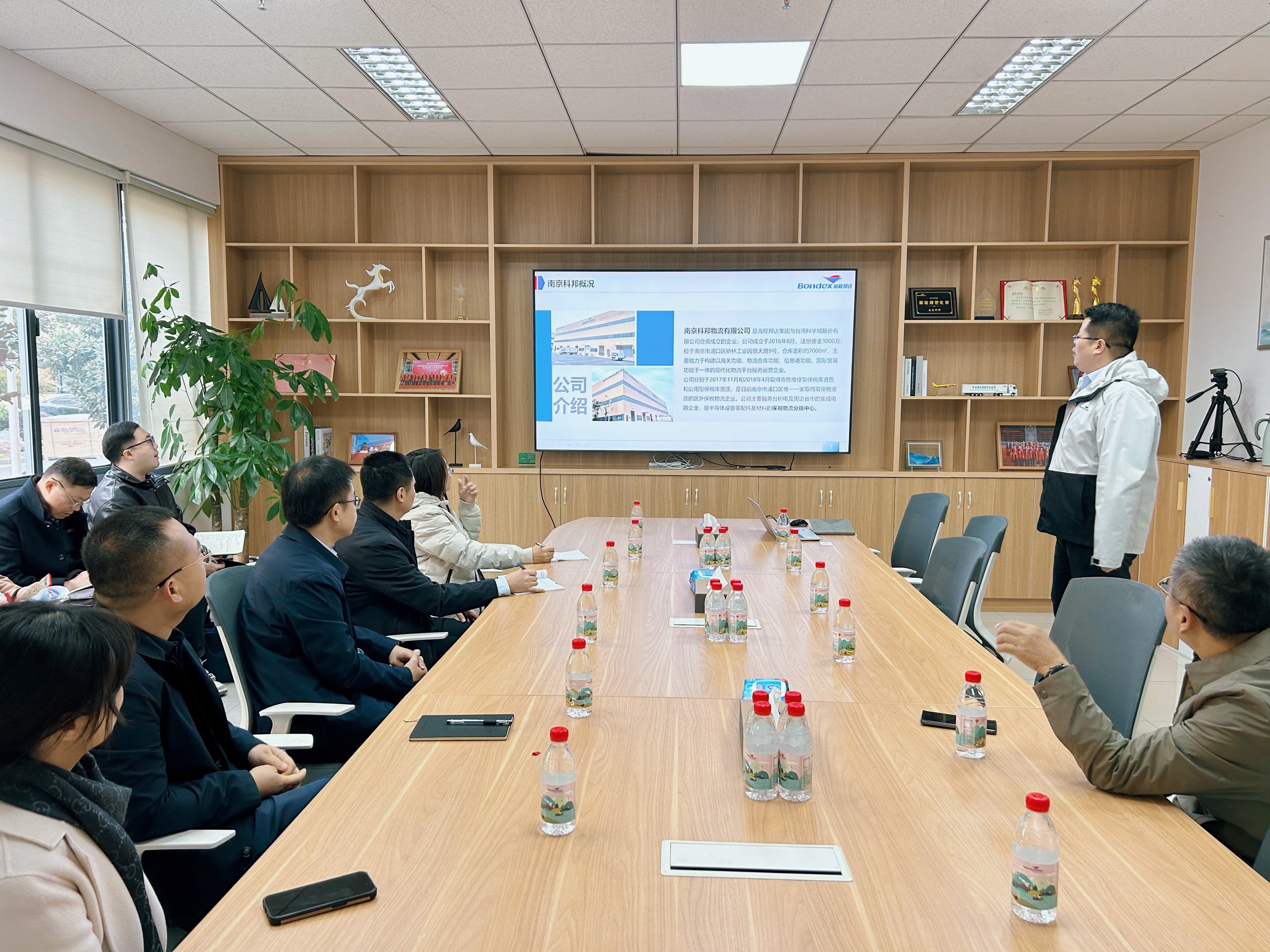 會上,樊司長一行與我司就南京科邦物流發(fā)展定位、業(yè)務(wù)內(nèi)容、對臺工作等問題展開深入交流,詳細了解企業(yè)生產(chǎn)經(jīng)營狀況,傾聽企業(yè)提出的問題和訴求。樊司長對我司長期以來的對臺工作給予了充分肯定,他希望南京科邦物流能夠通過自身實力繼續(xù)在寧臺經(jīng)濟融合中貢獻力量,行穩(wěn)致遠,進而有為。區(qū)相關(guān)領(lǐng)導(dǎo)表示,南京科邦為廣大客戶提供了高質(zhì)量的物流服務(wù),獲得高度認可,大大助力了營商環(huán)境,希望再接再厲,共創(chuàng)發(fā)展。